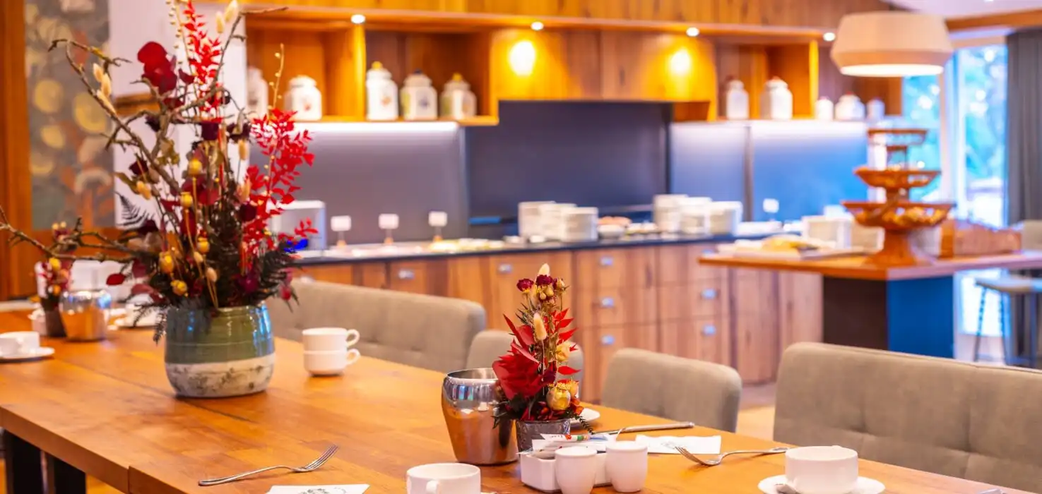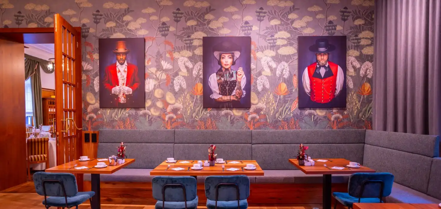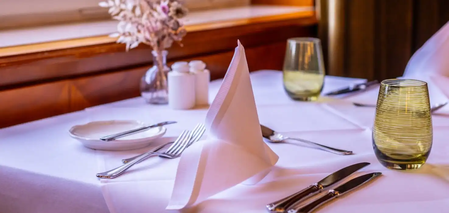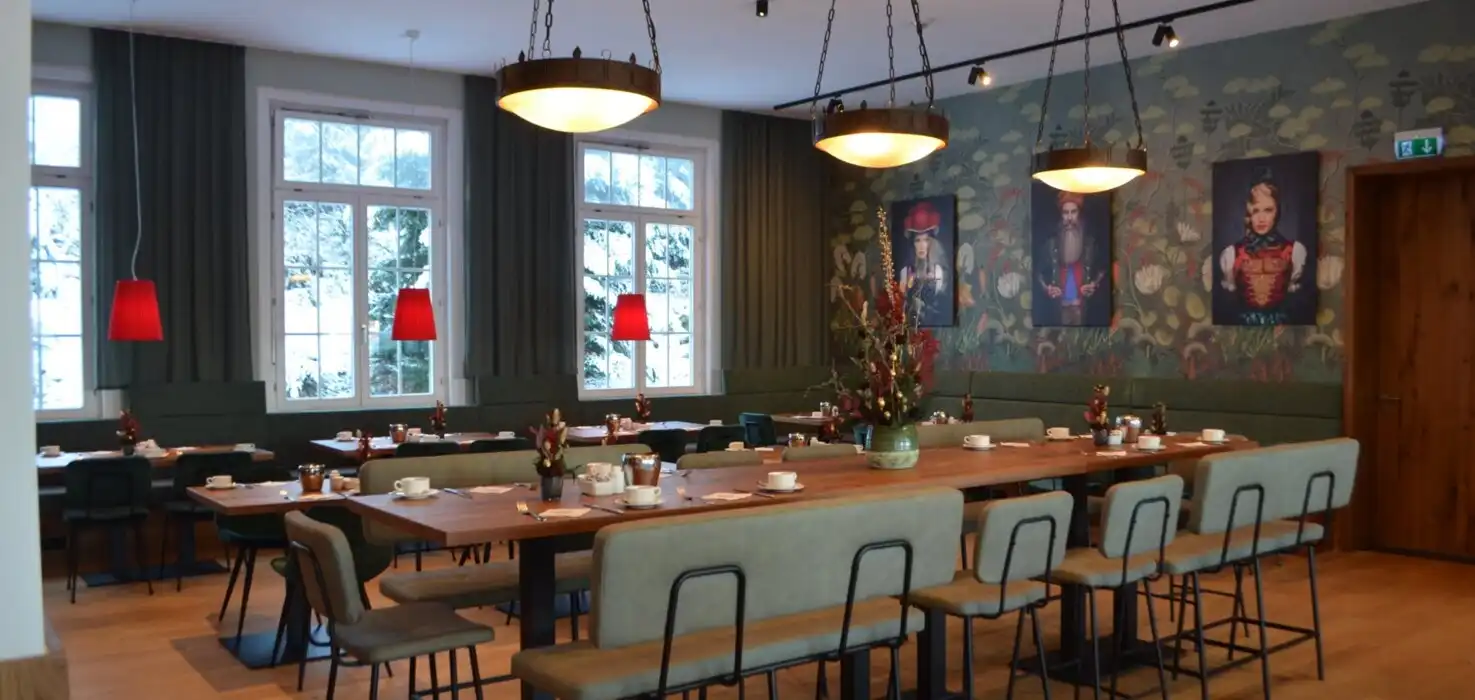 Das Restaurant:Tauchen Sie in die erhabene Schönheit unseres Gourmet-Restaurants „Palmenwald“, dem Frühstücksraum, der Kamin-Lounge, der Aussichtsterrasse und der Hotel-Bar „Paul Lechler“ ein. Dekoriert im prächtigen Jugendstil, mit handgefertigten Möbeln. Genießen Sie die Ruhe unter den Klängen klassicher Musik und die kulinarischen Spezialitäten der modernen und traditionellen Küche.
