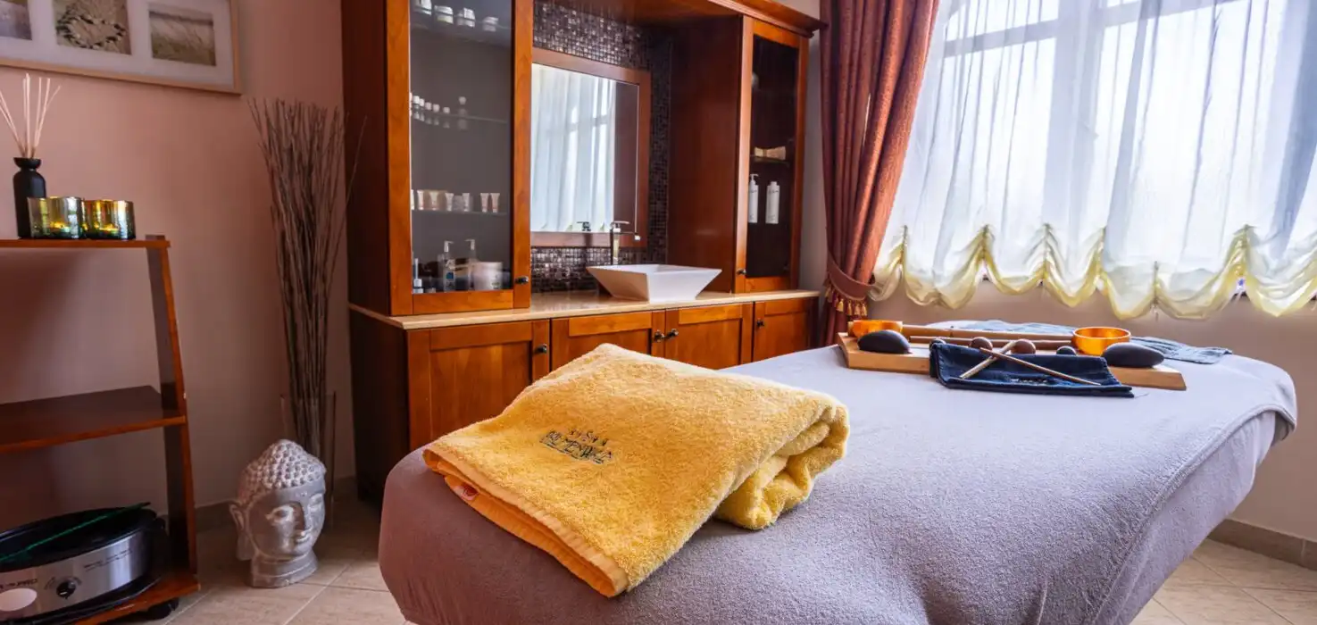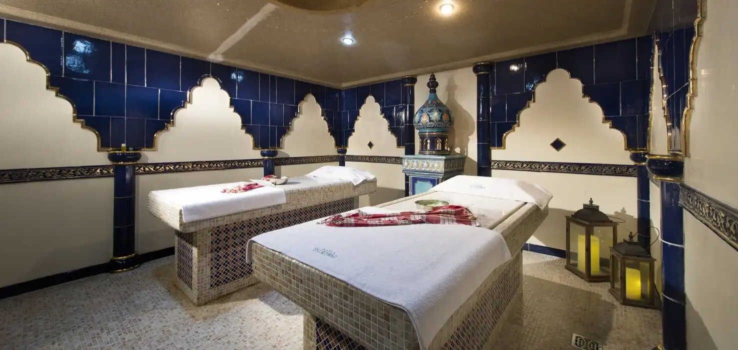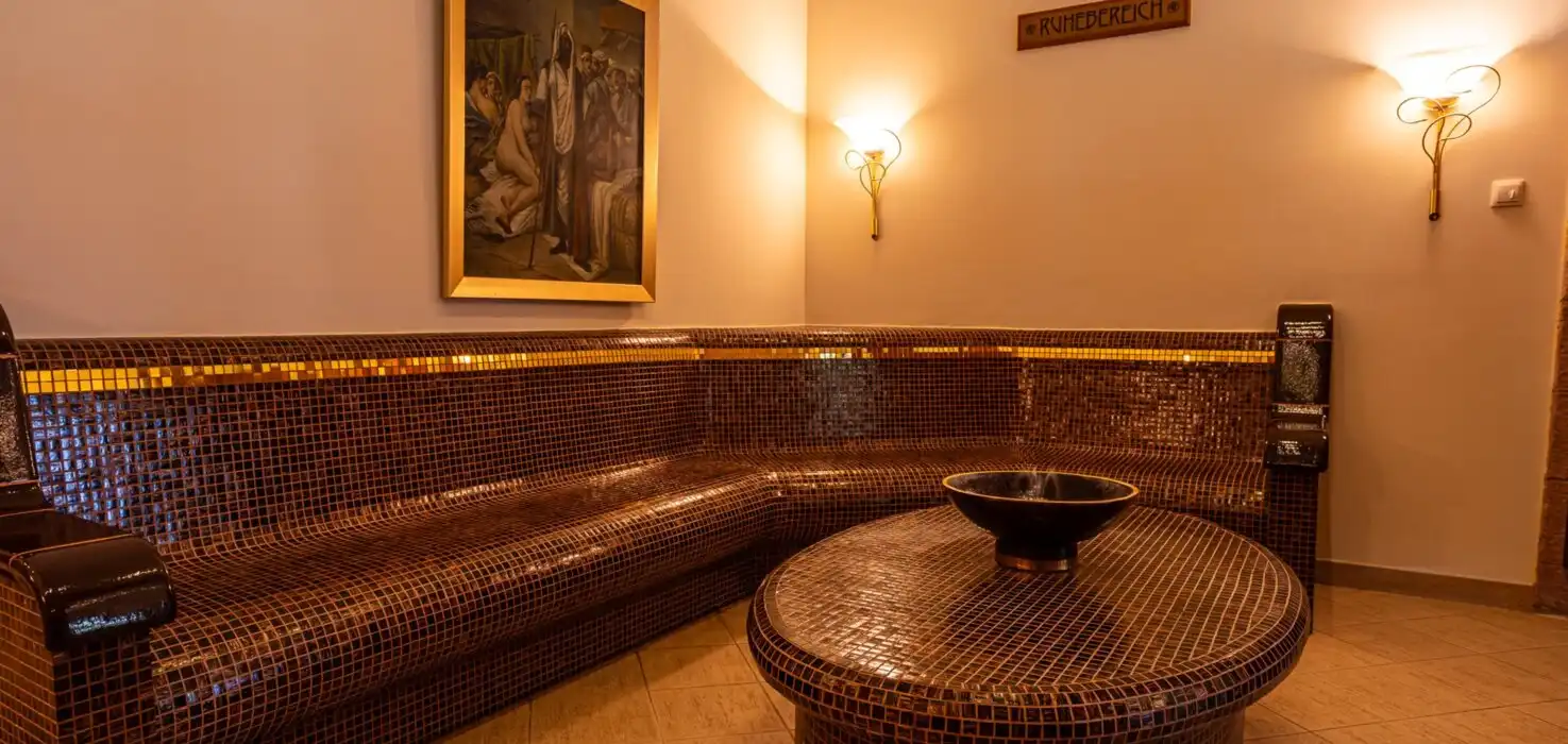 Sauna & Dampfbad:Unsere finnische Sauna, bietet die ideale Möglichkeit zur Reinigung und Befreiung des Körpers von Toxinen und Stress. Schalten Sie in der Sauna, dem aromatischen Dampfbad, oder dem Tepidarium ab. Erfrischen Sie Ihren Körper im Eisbereich und beenden Sie das angenehme und erholsame Ritual, im gemütlichen Ruhebereich. Den Gästen steht ein Hallenbad mit Hydrojets, Finnische Sauna, Dampfbad, Eisbereich, Ruhebereich, Fitnessraum kostenfrei zur Verfügung. Die stillvoll eingerichteten Behandlungsräume und das türkische Bad (Haman), stehen Ihnen für diverse Behandlungen und Massagen gegen Gebühr, zur Verfügung.